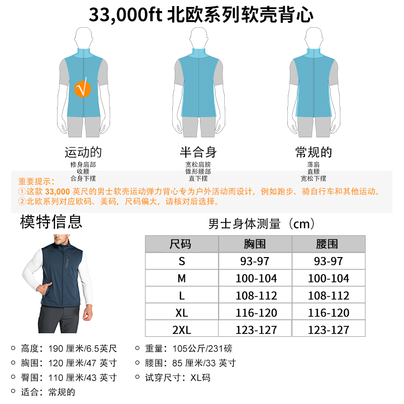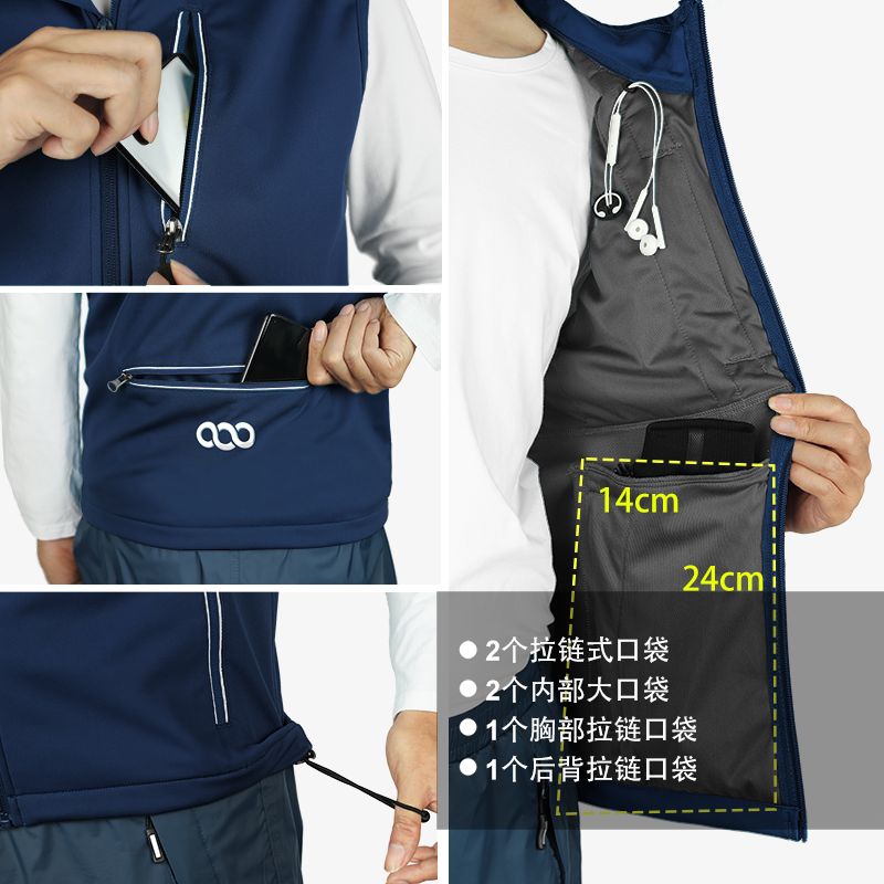 33000ft北欧大码 立领春秋马夹大口袋户外运动骑行跑步安全反背心