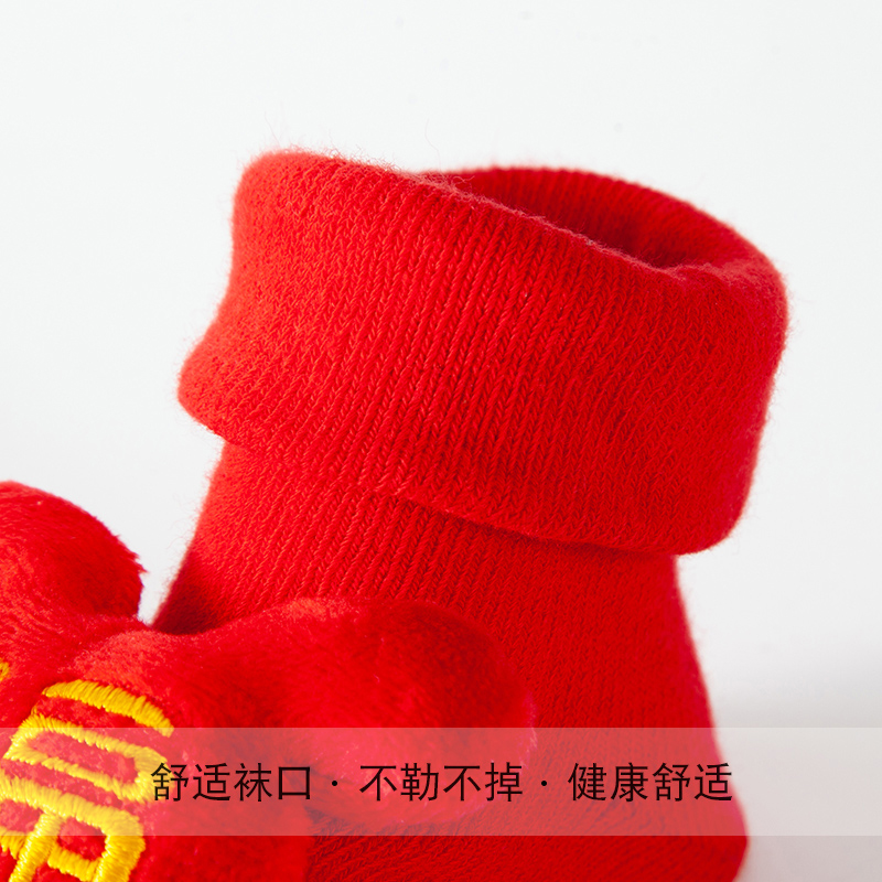 新生婴儿袜子红色春秋冬季 1岁满月福袜 加厚毛圈袜男女宝宝纯棉0