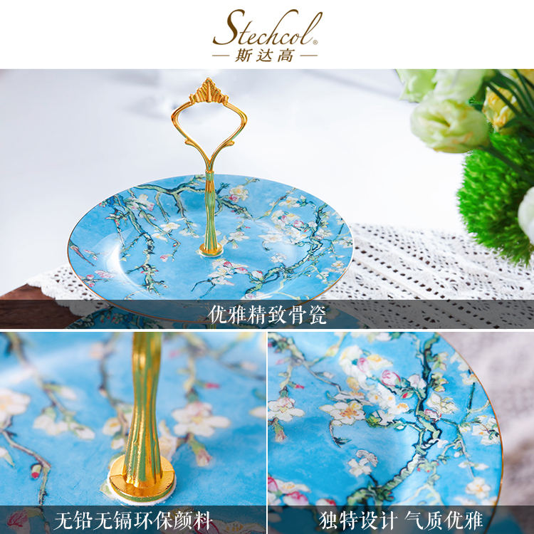 斯达高Stechcol 杏花开双层甜品台家用骨瓷水果盘点心蛋糕零食架