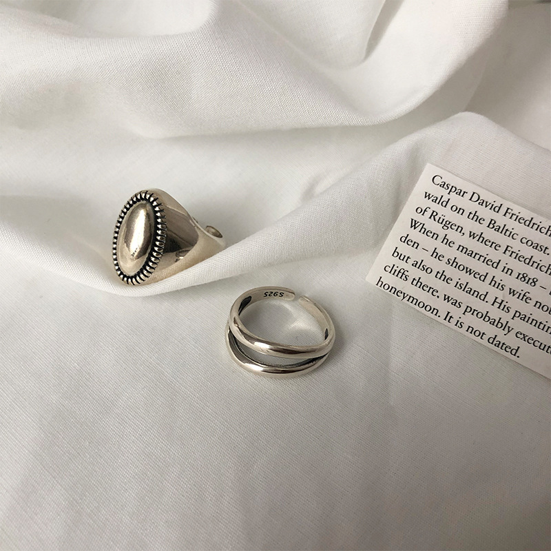 s925纯银复古戒指女招财聚财钱币个性 设计简约小众开口转运指环潮