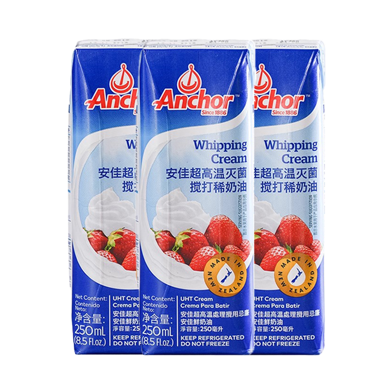 安佳稀奶油250ML进口动物性淡奶油面包蛋糕裱花蛋挞烘焙diy原材料