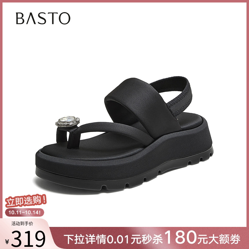 沙滩运动女凉鞋 厚底休闲夹趾凉鞋 I7571BL5 商场新款 百思图2025夏季