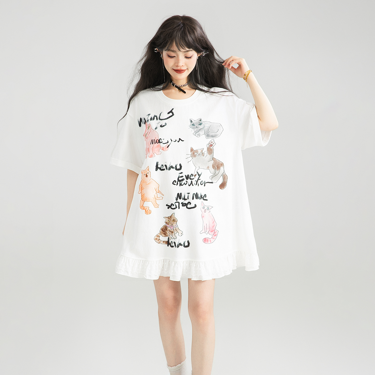 2025秋季 百搭针织连衣裙女款 拼接镂空刺绣蕾丝花边裙 白茶清欢