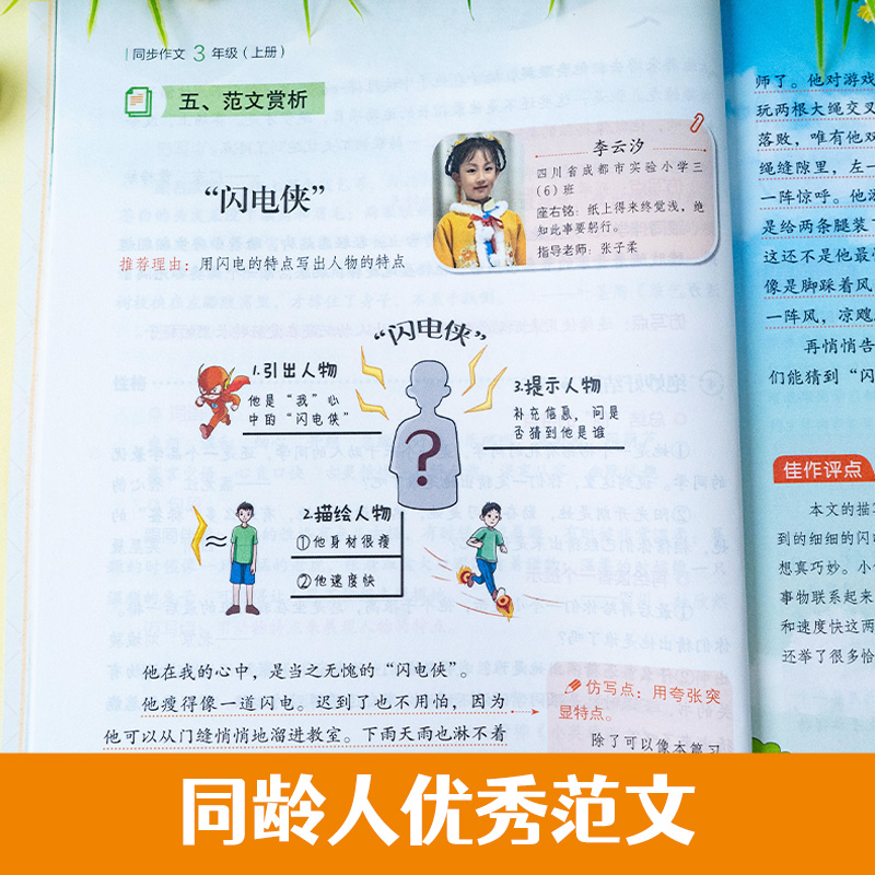 开心同步作文24秋三四五六年级上册小学语文阅读每日一练技巧强化训练满分作文写作技巧金句素材思维导图旗舰店