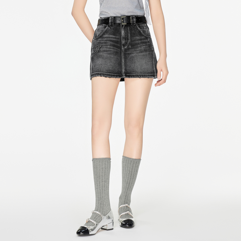 口袋木耳边花苞半身裙中长裙2025秋新款 2217 显瘦 本后 BenHou