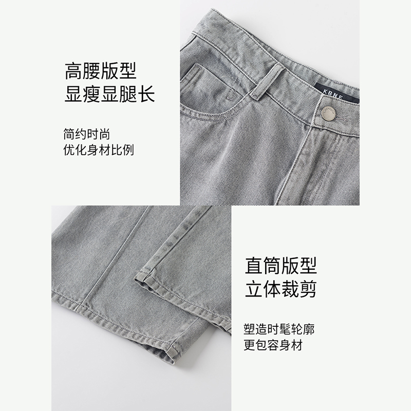 新款 夏季 阔腿裤 气质微弹长裤 KBNE蓝色微喇牛仔裤 女装 莱赛尔直筒裤