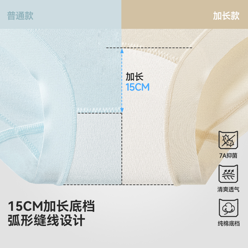 头 纯棉加长抗菌裆原棉无染色舒适透气收腹三角裤 猫人内裤 女25新款