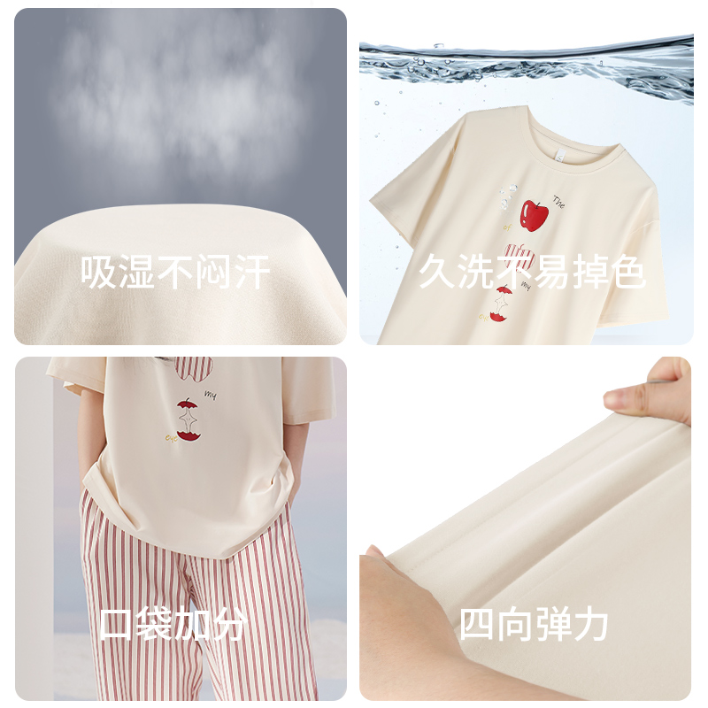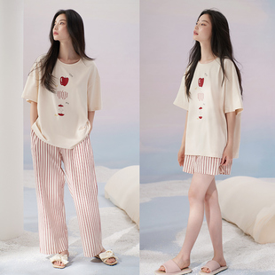 纯棉短袖 薄款 短裤 长裤 休闲家居服 轩靓2025新款 三件套装 睡衣女夏季