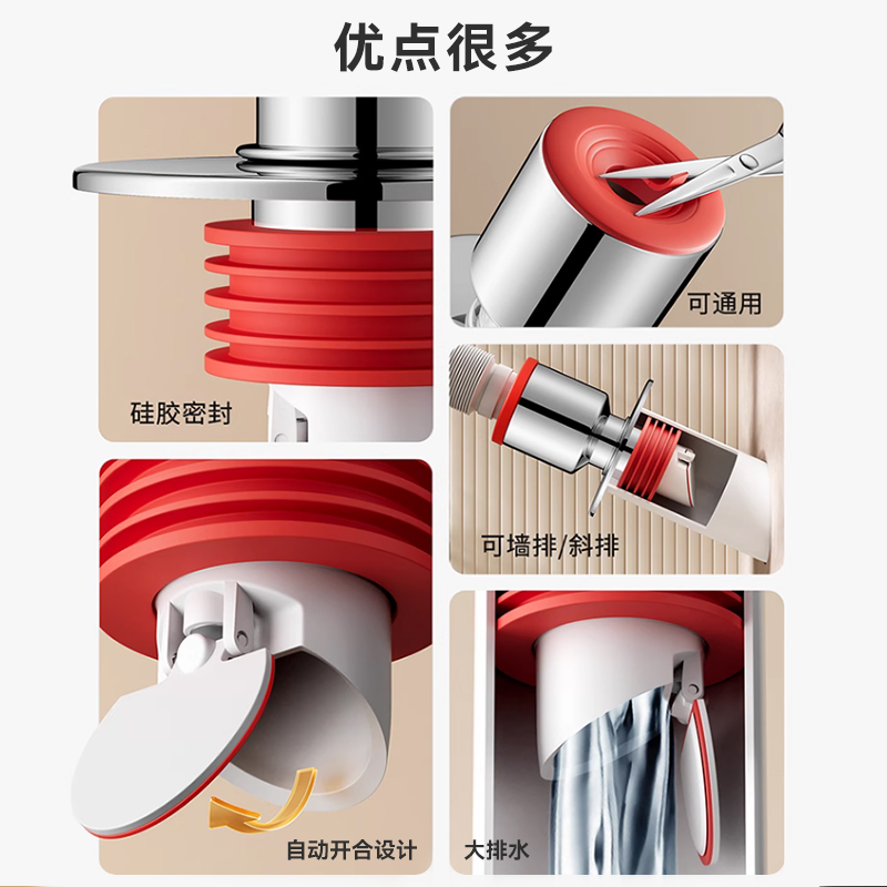 艾干净洗衣机排水管防臭防溢水密封圈塞洗手盆下水管道防返臭神器