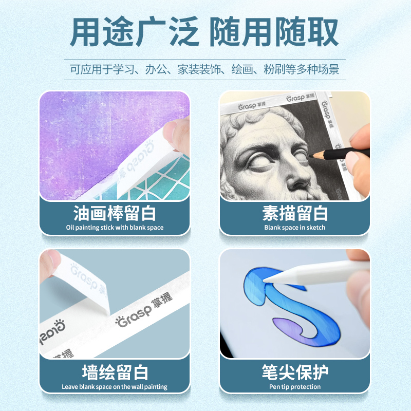 掌握美纹纸胶带美术生适用纸胶带美缝纸画画用美纹胶汽车喷漆遮蔽皱纹纸遮挡墙面装 修手撕绘画遮盖留白