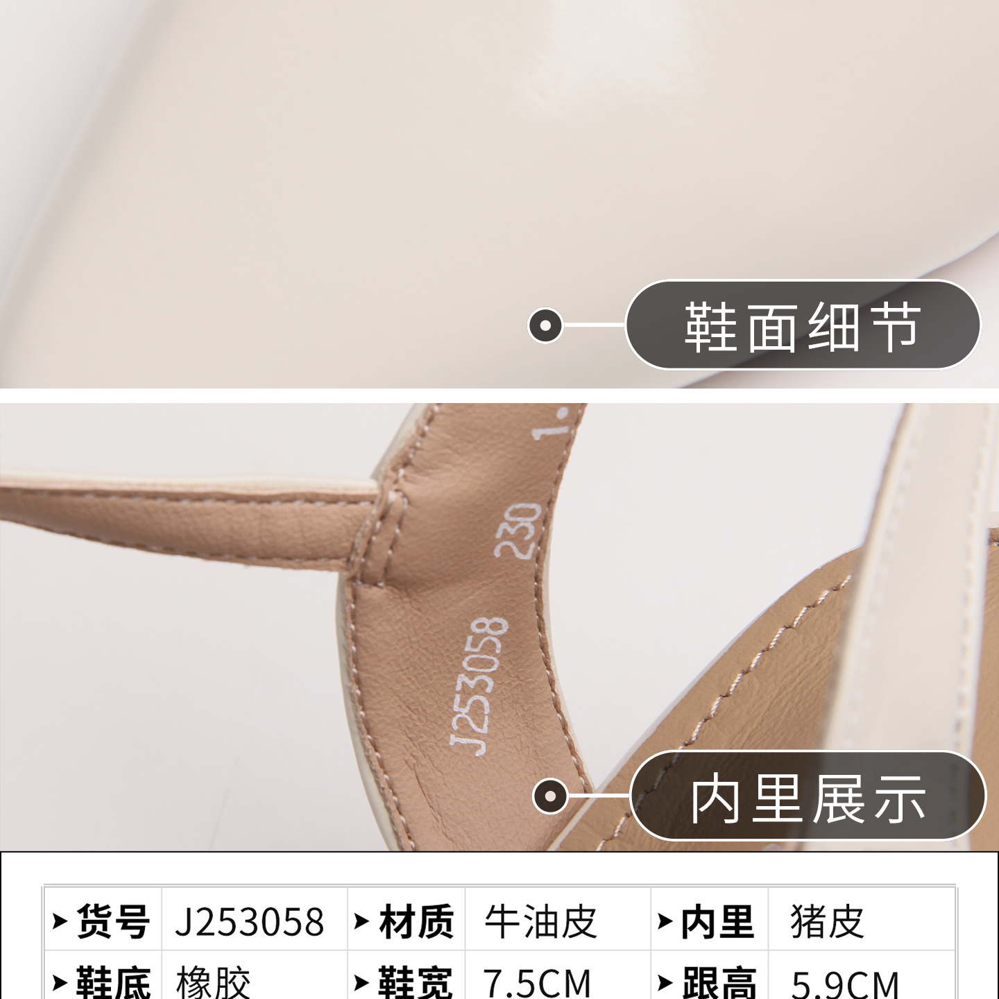 时尚 嘉俪多女韩版 夏季 牛油皮粗高跟尖头包头一字扣带2025新款 凉鞋