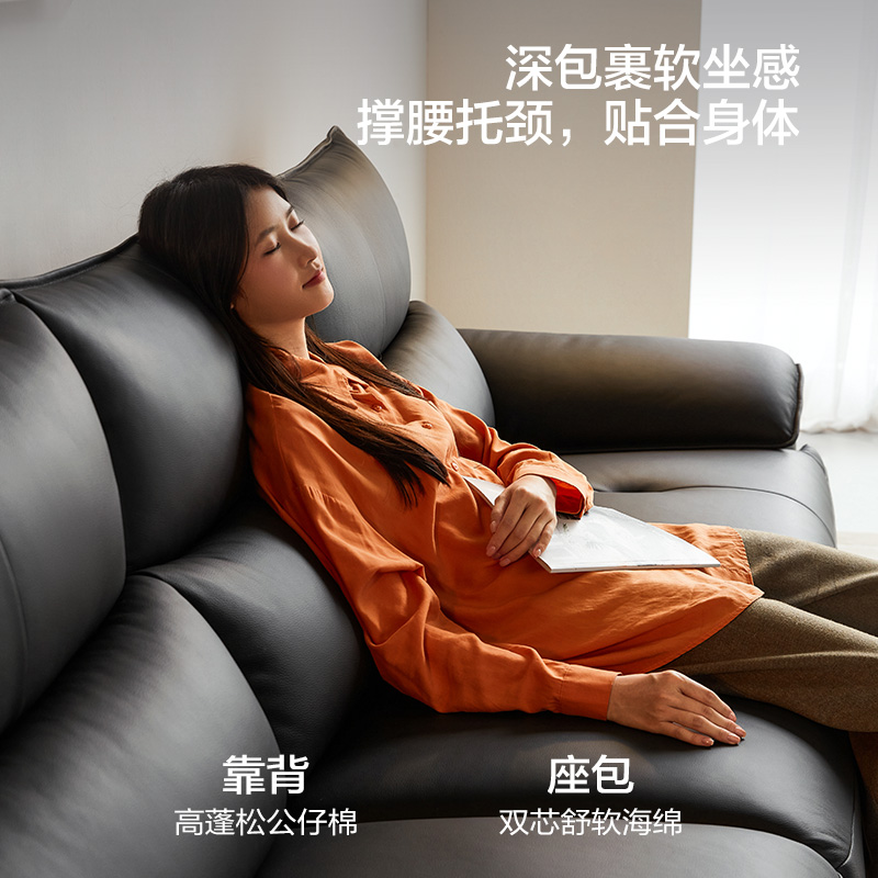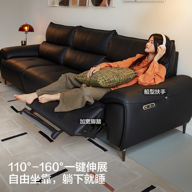 政府补贴DDC意式 极简电动功能全真皮熊抱沙发客厅黑色沙发床新款