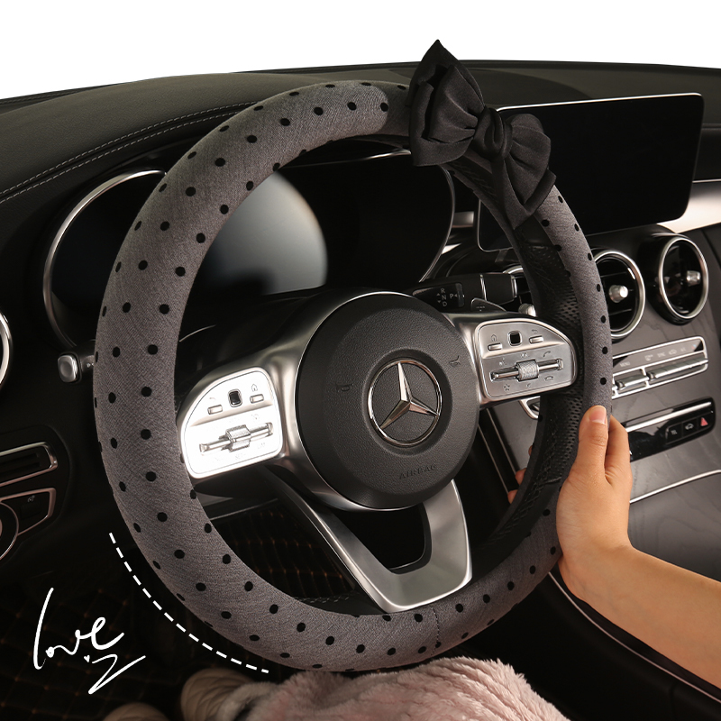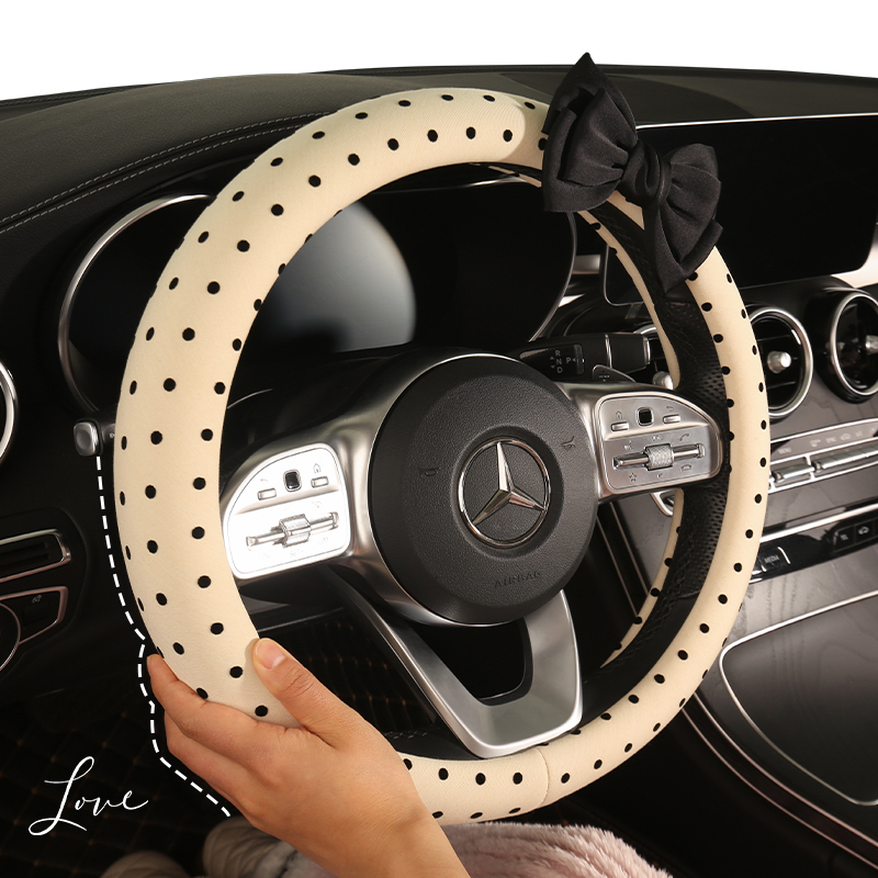 波点可爱车把套 夏季 汽车方向盘套四季 通用蝴蝶结小香风高级感女款