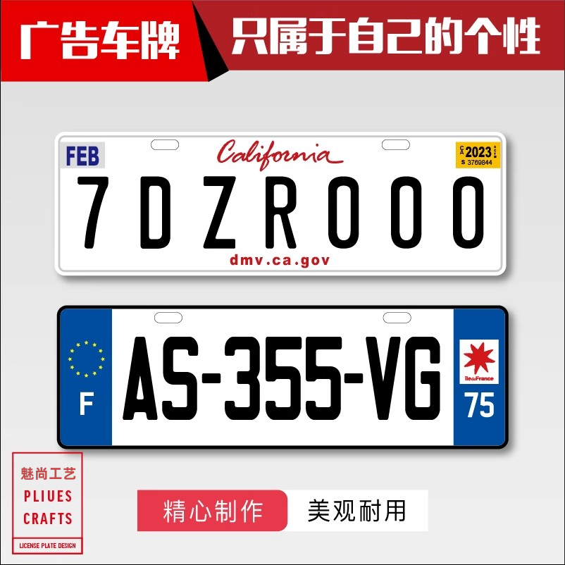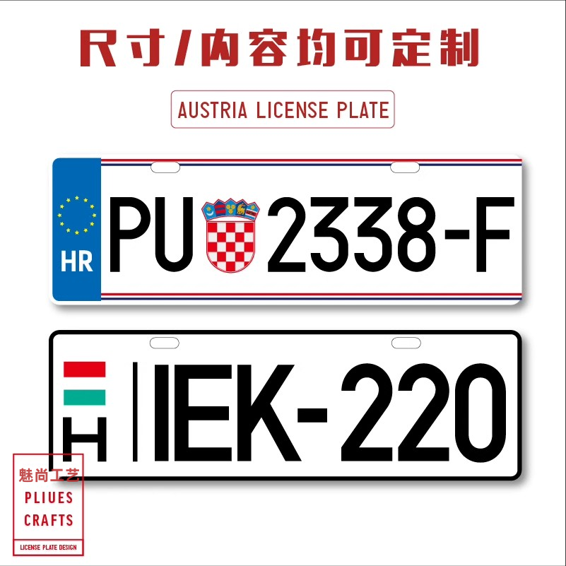 金属铝广告车牌德国欧盟外国牌照汽车拍摄宣传新款 饰俄罗斯英国 装