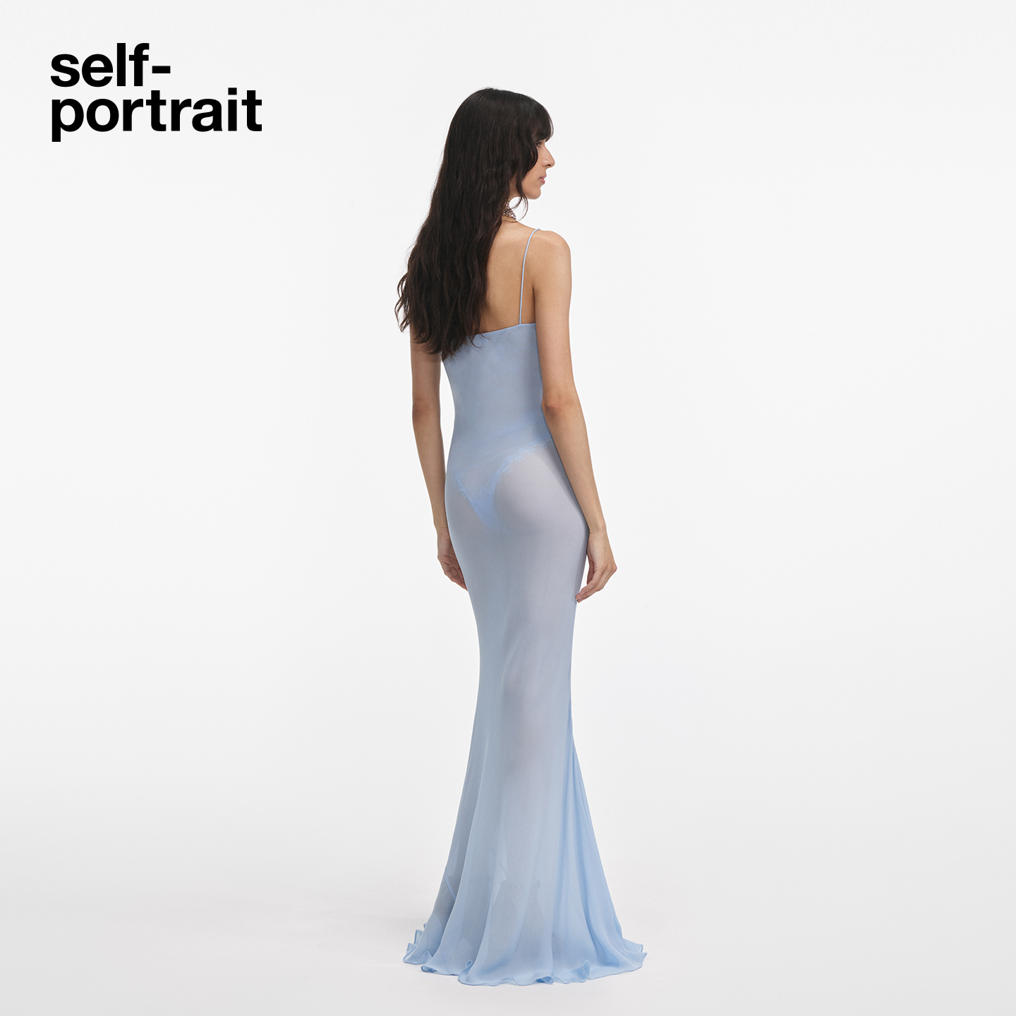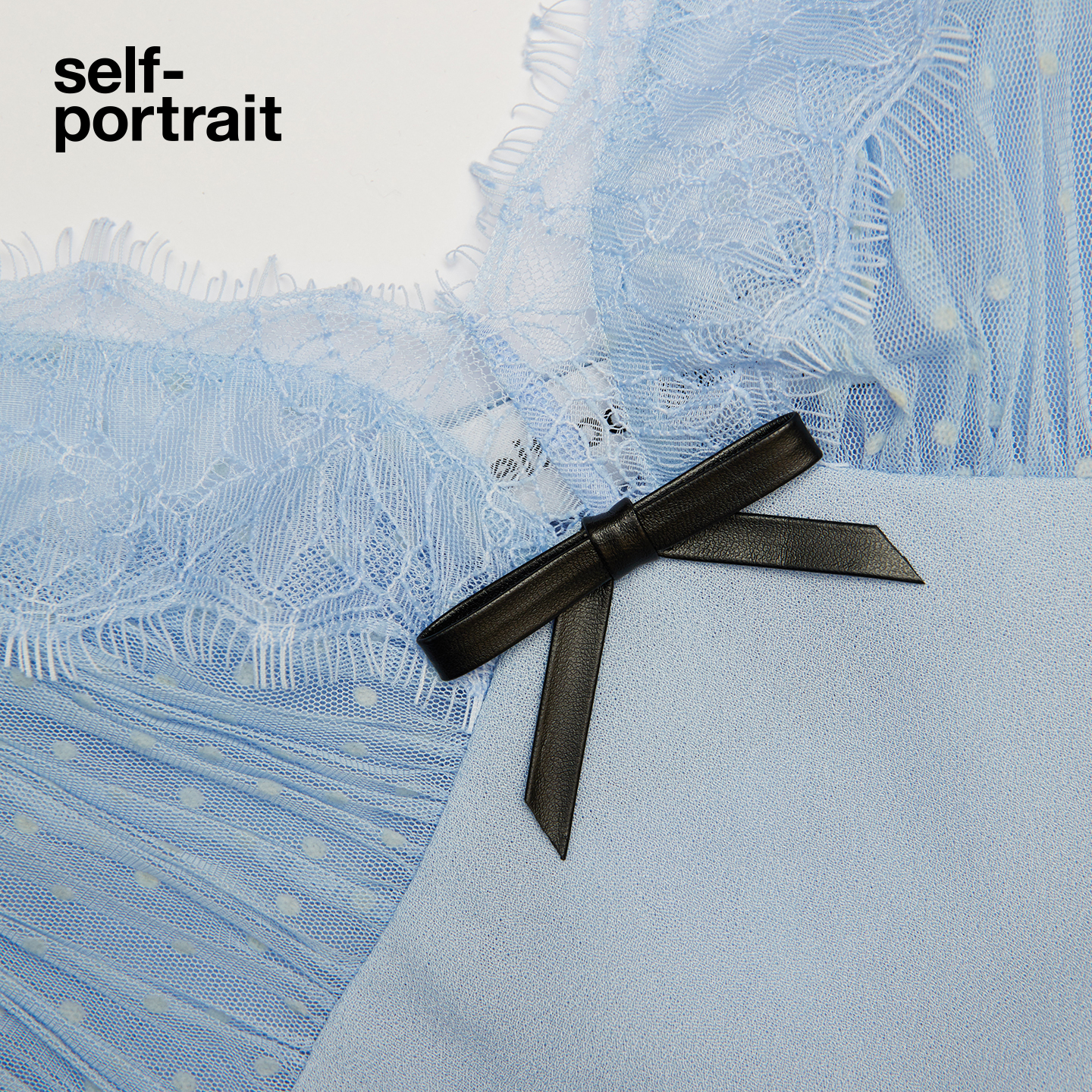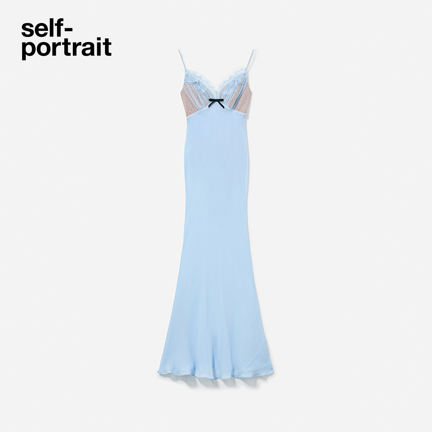 薄雾蓝吊带波点蕾丝礼服连衣裙长裙 2025早秋新款 self portrait