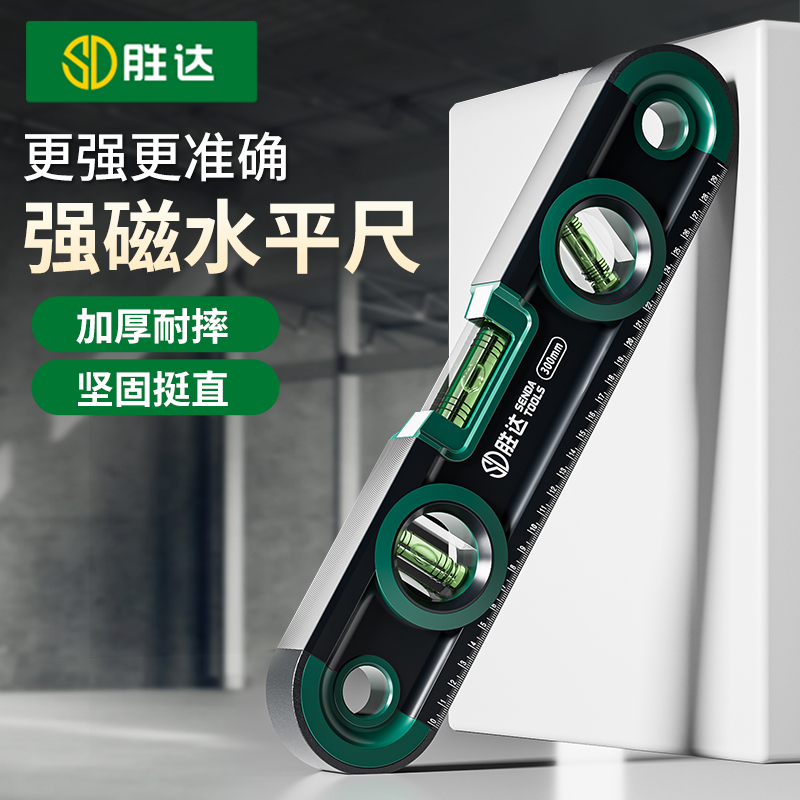 胜达强磁高精度水平尺小型家用靠尺铝合金水平仪平水尺量尺厚耐摔