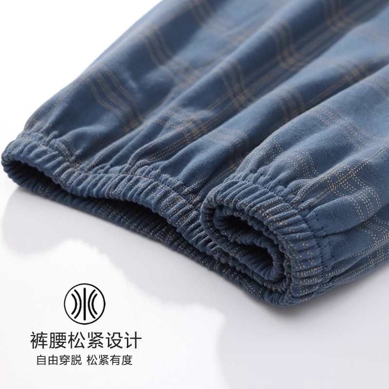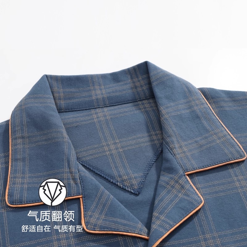 春秋季 格子家居服套装 棉质长袖 大码 老人爸爸冬季 中老年人睡衣男士