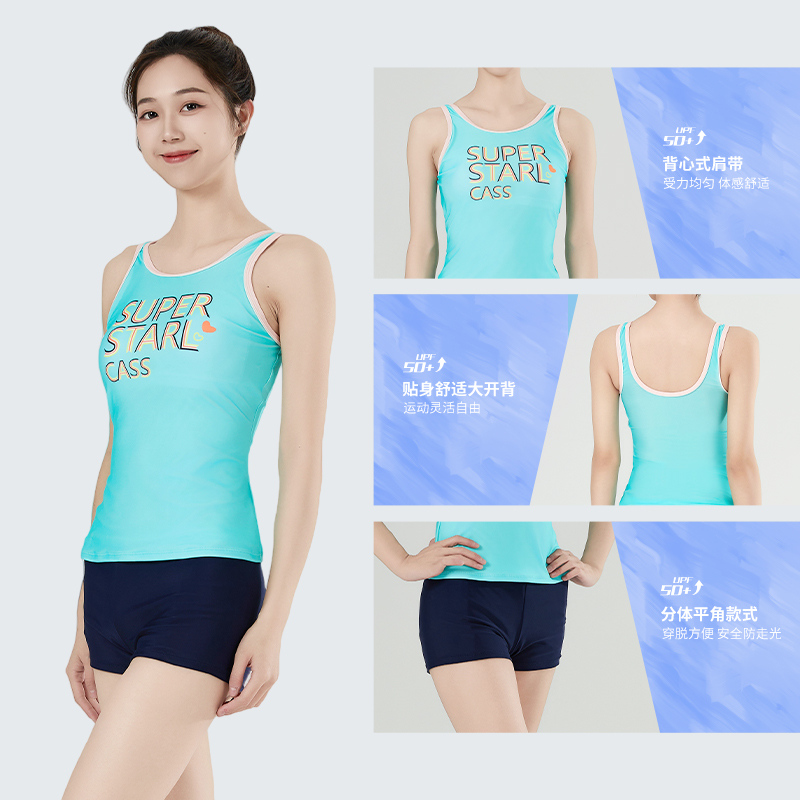 游泳馆专用保守小个子泡温泉泳装 CASS泳衣女分体式 两件套平角大码