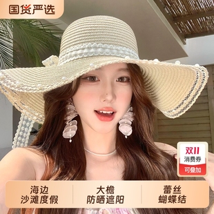 蕾丝草编大帽檐遮阳防晒太阳帽 风草帽海边帽子女夏季 2025新款 法式