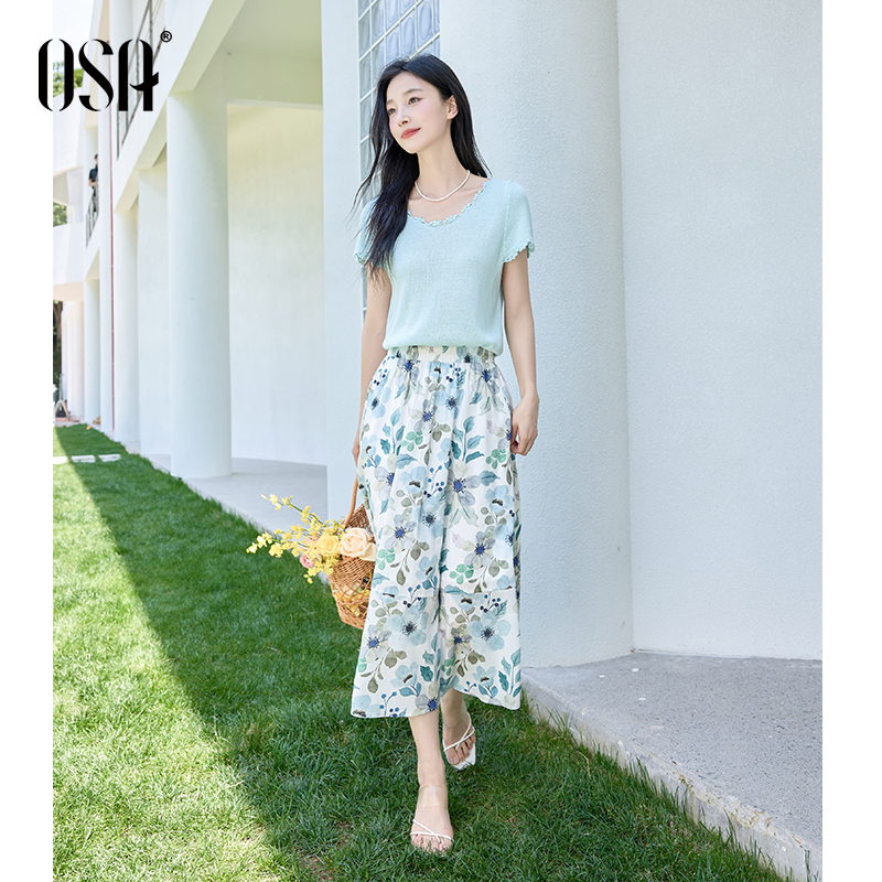 COCOBELLA 设计感不规则条纹印花莱赛尔半身裙HS3135 醋酸