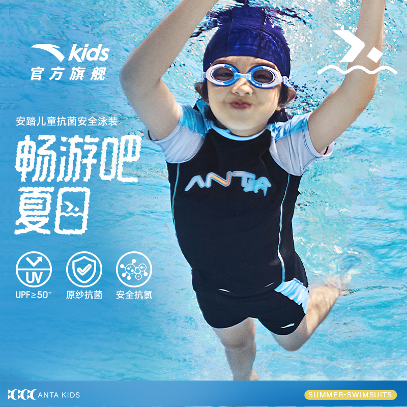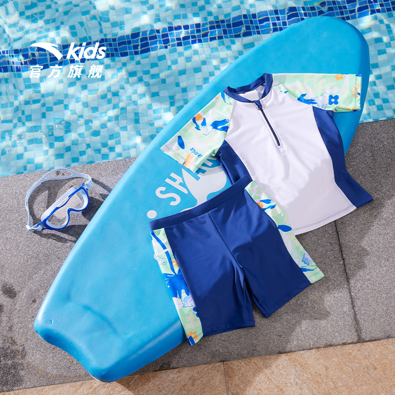 套装 中小学生抗氯分体泳衣泳裤 男童宝宝泳衣夏2025新款 安踏儿童装