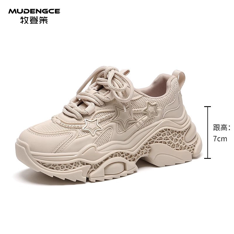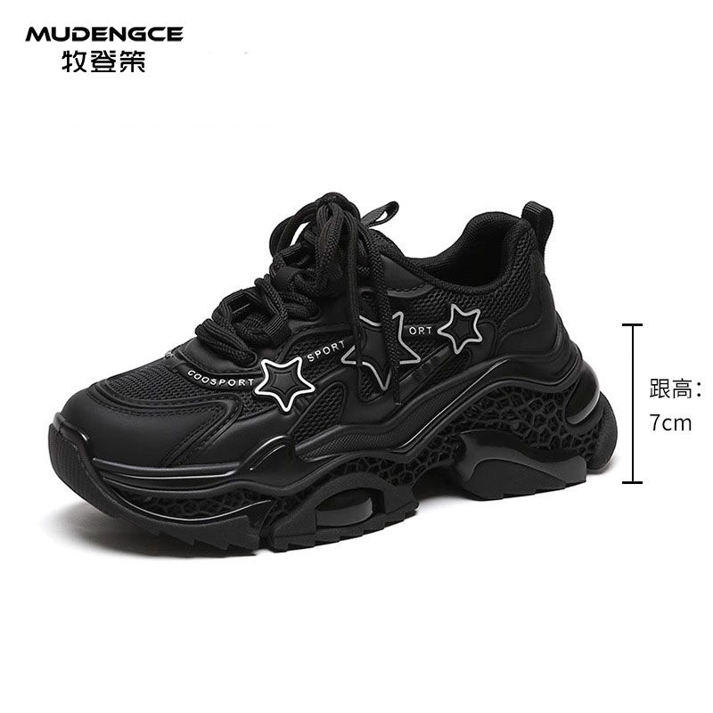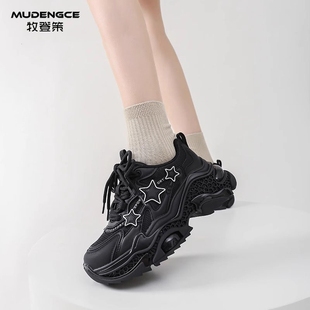 系带透气网面跑步鞋 轻奢星星老爹鞋 韩版 增高轻便休闲运动鞋 女新款