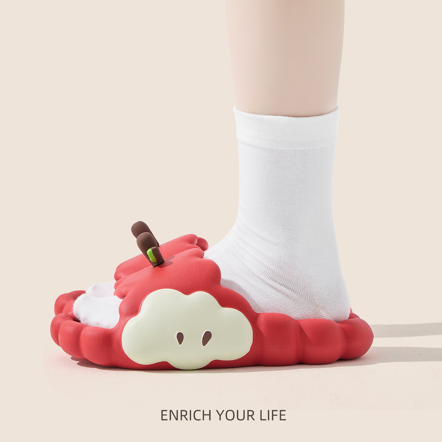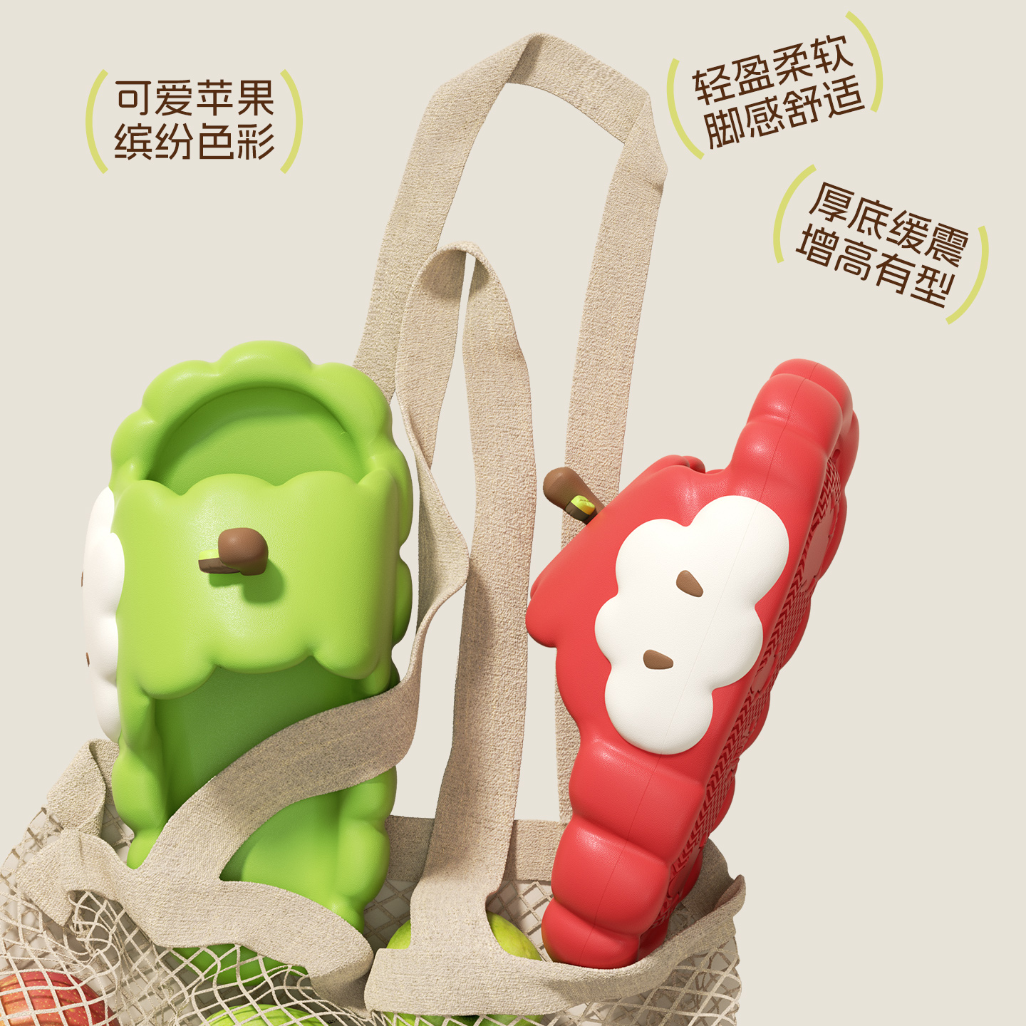 浴室洗澡EVA凉拖 夏卡通可爱防滑防臭家居情侣款 鸳鸯苹果拖鞋 女款