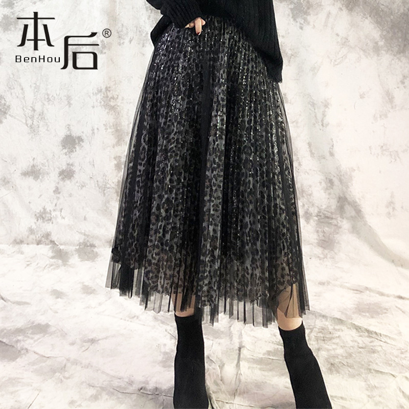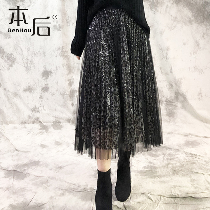 女裙X1 a字半身裙春秋季 唐狮灰色百褶裙中长款 半身裙女夏2025新款