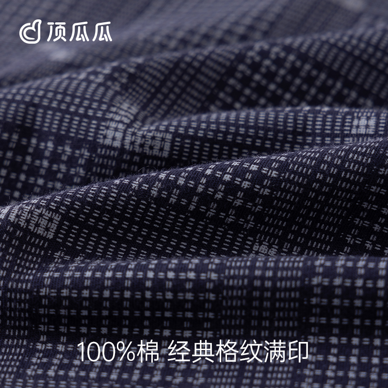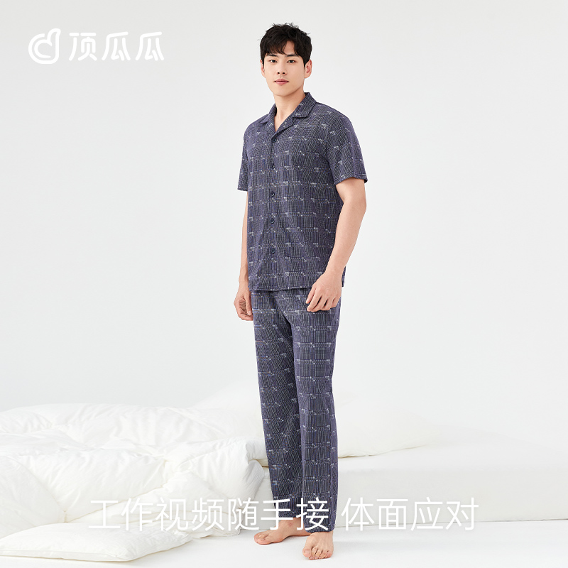 套装 顶瓜瓜纯棉薄款 长裤 短袖 透气顶呱呱汗布开襟翻领商务格纹男士