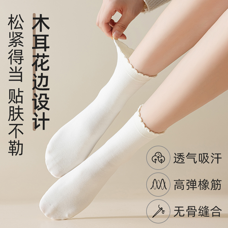 灰色袜子女秋季 纯棉中筒袜木耳花边袜子无骨袜miu系堆堆袜女春秋