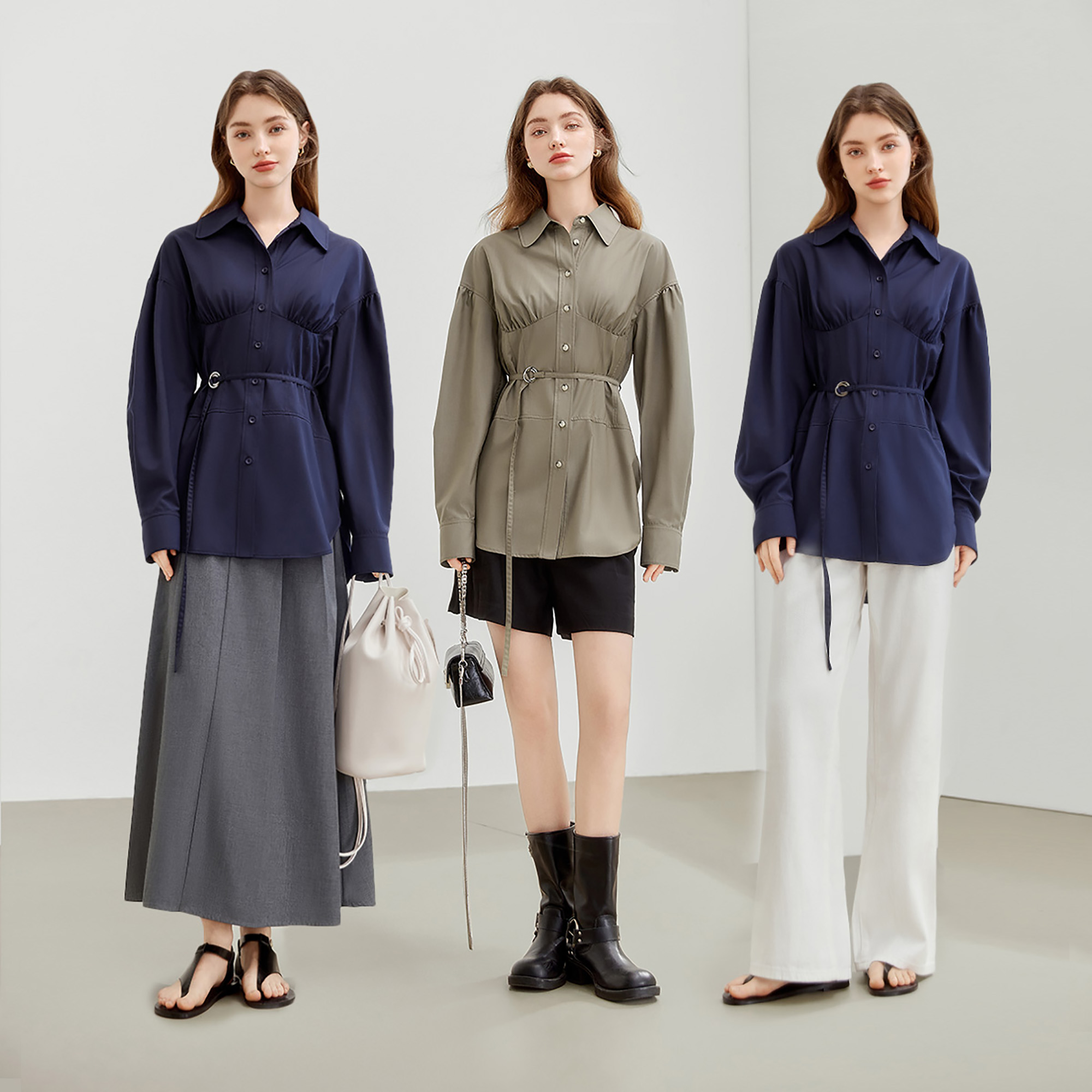 设计感长袖 落肩袖 衬衫 新款 收腰小众上衣女 女2024秋季 MEETLADY法式