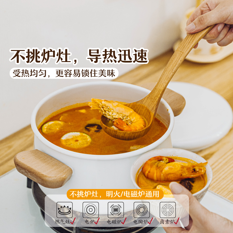 树可皓月搪瓷汤锅家用双耳锅燃气电磁炉通用煮汤炖锅大容量食品级