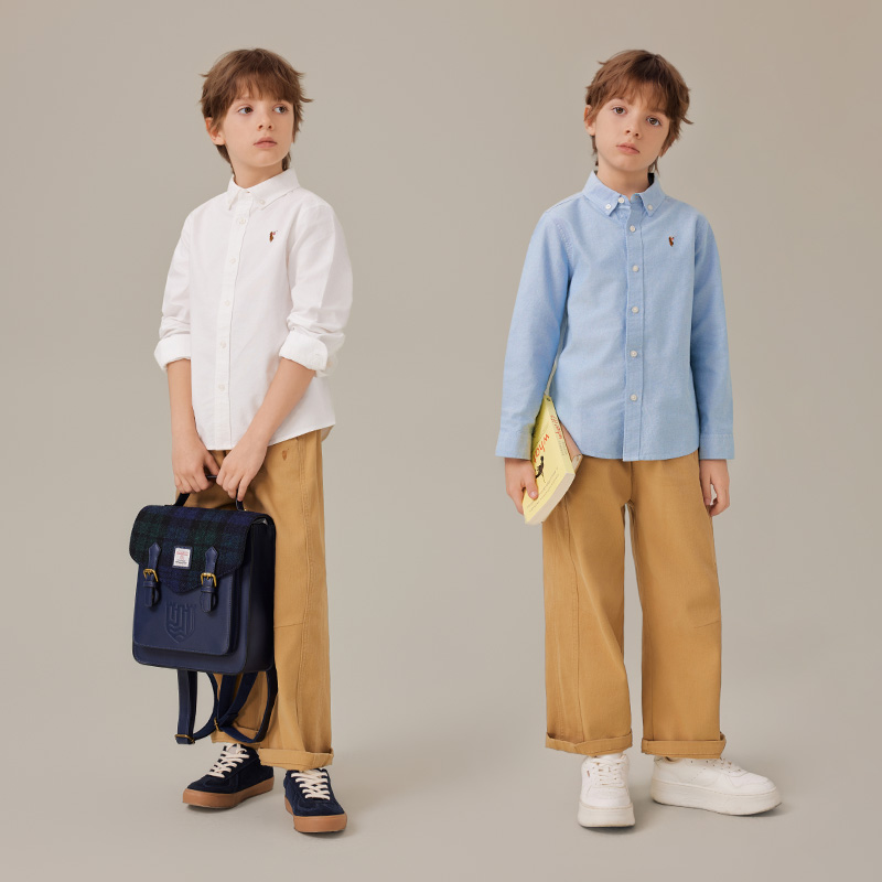 男童牛津纺长袖 秋冬新款 POLOWALK童装 男全棉舒适亲肤衬衫 纯棉