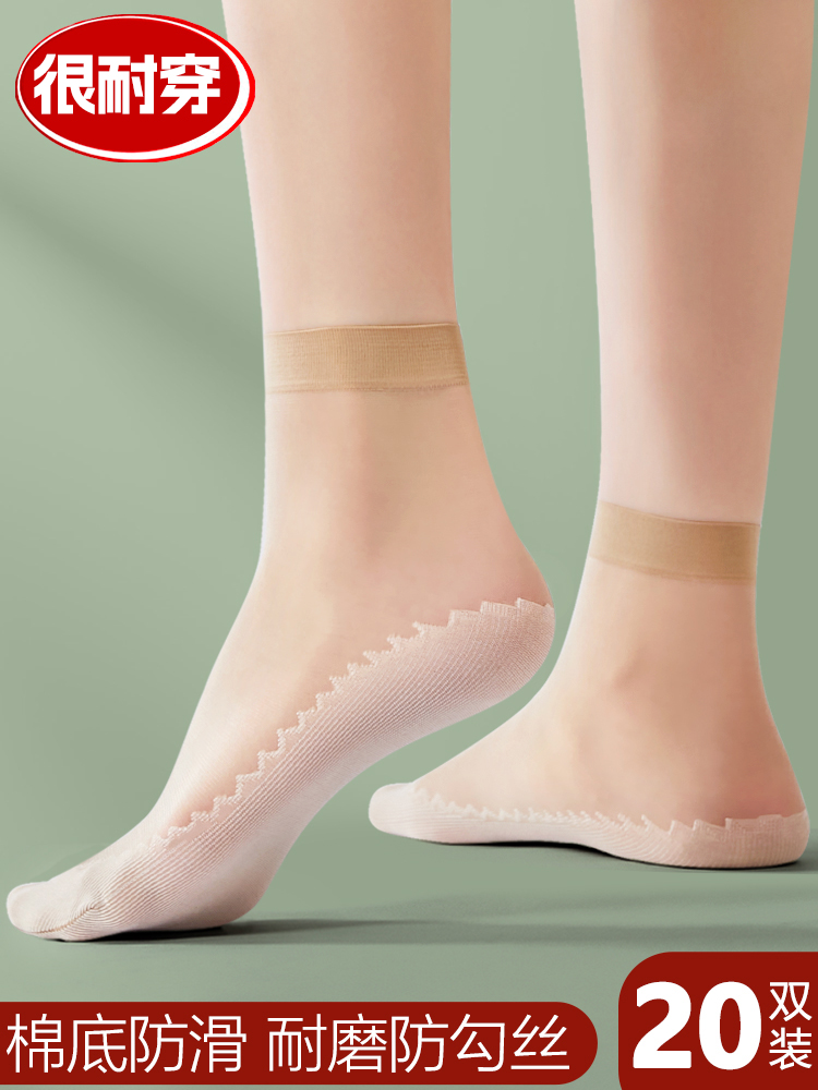 纯棉吸汗 防勾丝2024年肉色防滑水晶丝凉鞋 棉底丝袜女中筒夏季 薄款