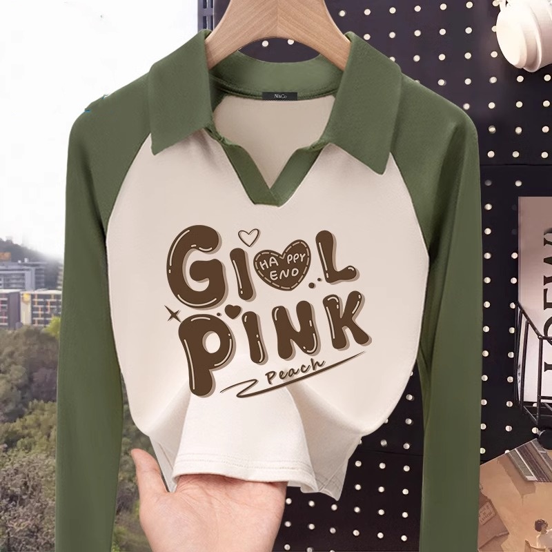 辣妹修身 打底衫 显瘦上衣 T恤女春秋内搭短款 设计感小众正肩V领长袖
