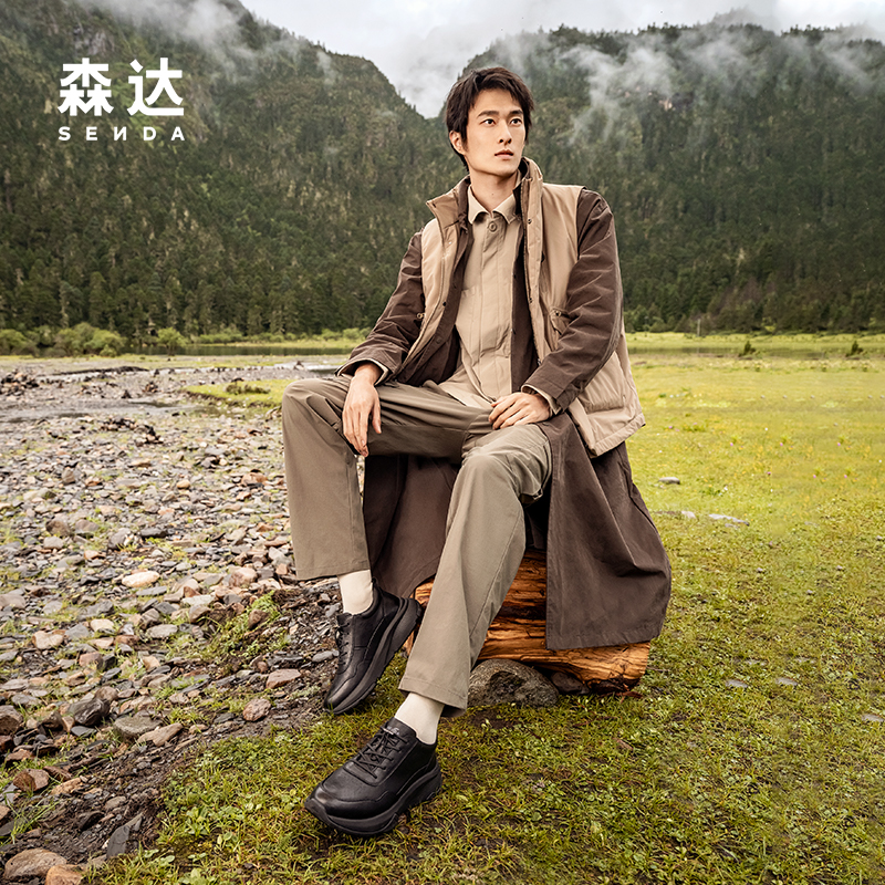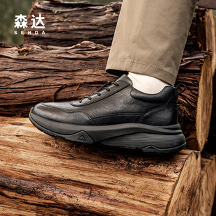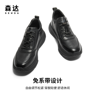 森达皮靴男春秋商场同款 户外运动厚底增高免系带休闲短靴K3P40DD4