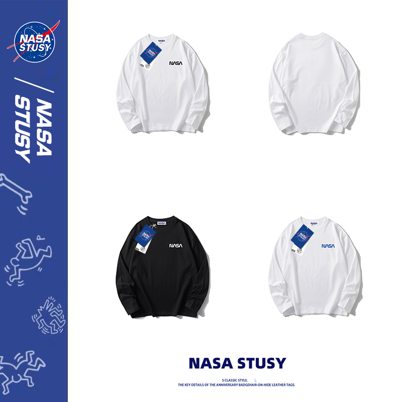 T恤男春潮流纯色上衣服情侣打底衫 NASA STUSY纯棉长袖