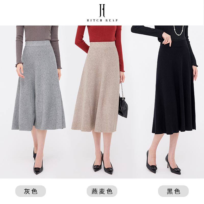 显瘦极简长裙 修身 希区瑞普春秋中长款 针织半身裙子a字裙气质新款