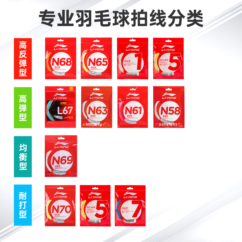 李宁羽毛球拍线正品 高反弹耐打羽毛球线1号线5号N65N68N69球拍线