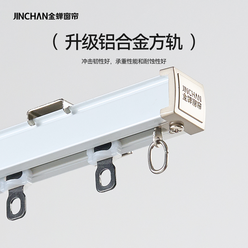 金蝉窗帘轨道导轨现代简约铝合金静音滑轮顶装 单双轨JC03直轨 侧装