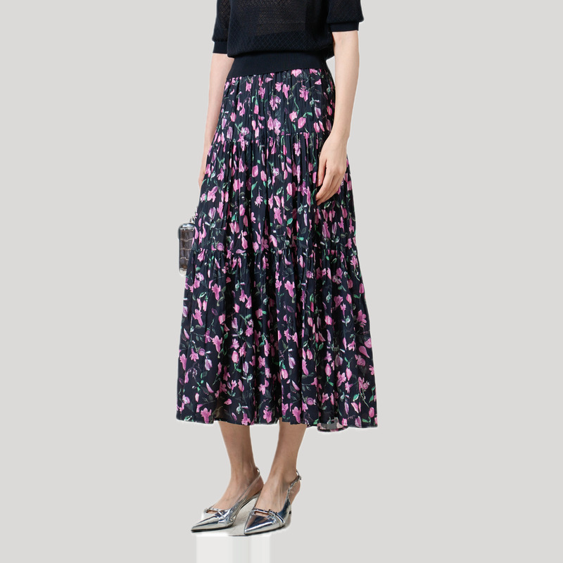 女装 新款 百搭直筒显瘦中长裙 纹半身裙2025年秋装 秋水伊人学院风格