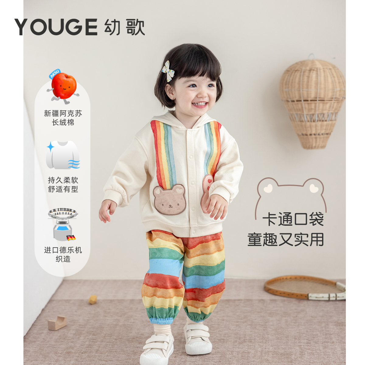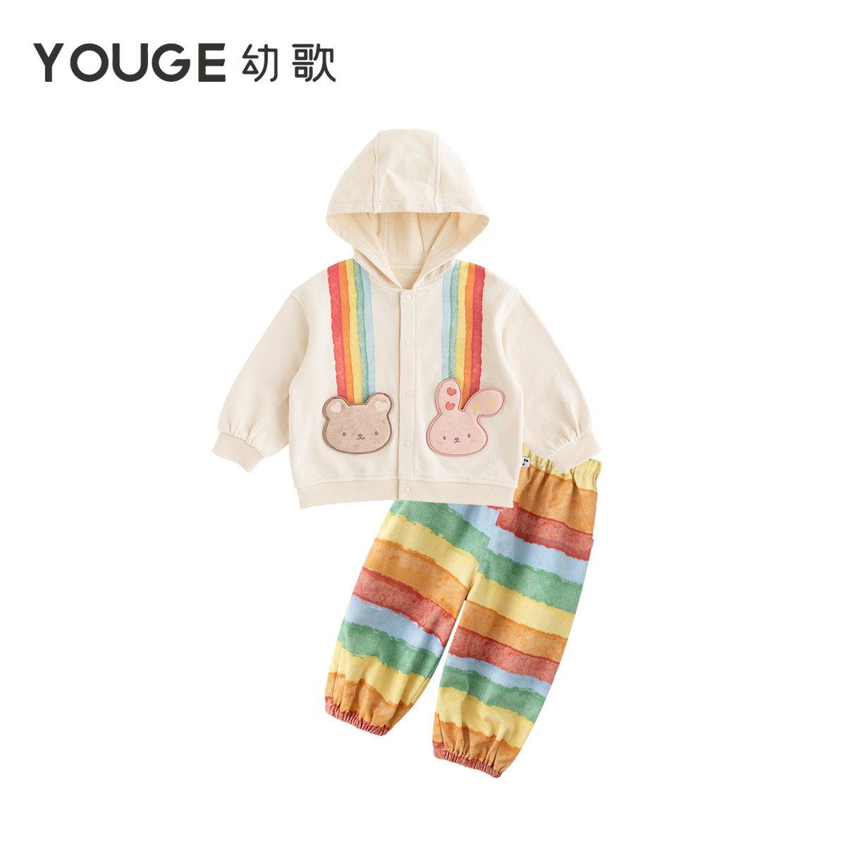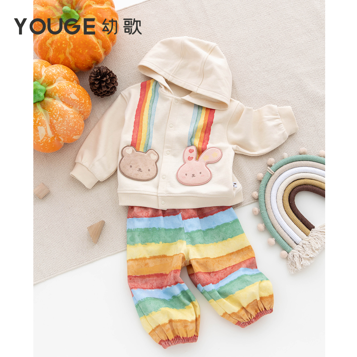 套装 YOUGE幼歌 彩虹连帽外套宽松柔软亲肤条纹长裤 新款 婴幼儿秋季