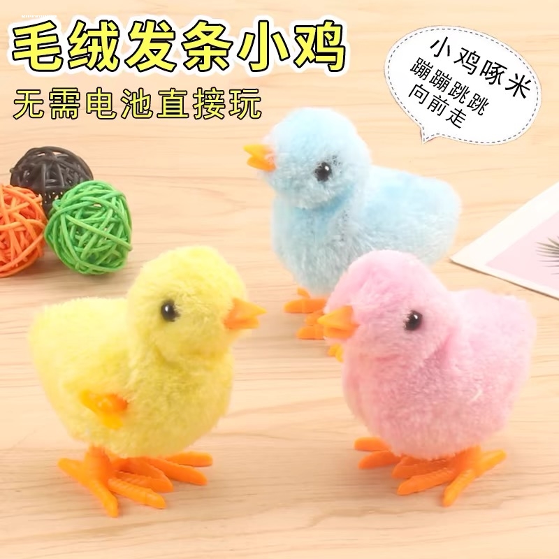 发条小鸡玩具儿童上弦发条毛绒小黄鸡宝宝1一2岁婴儿玩具跳跳鸭3