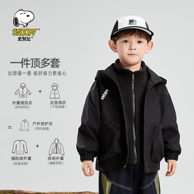 装 2025新款 三合一防风防水棉服外套男女冲锋衣 秋冬季 史努比童装