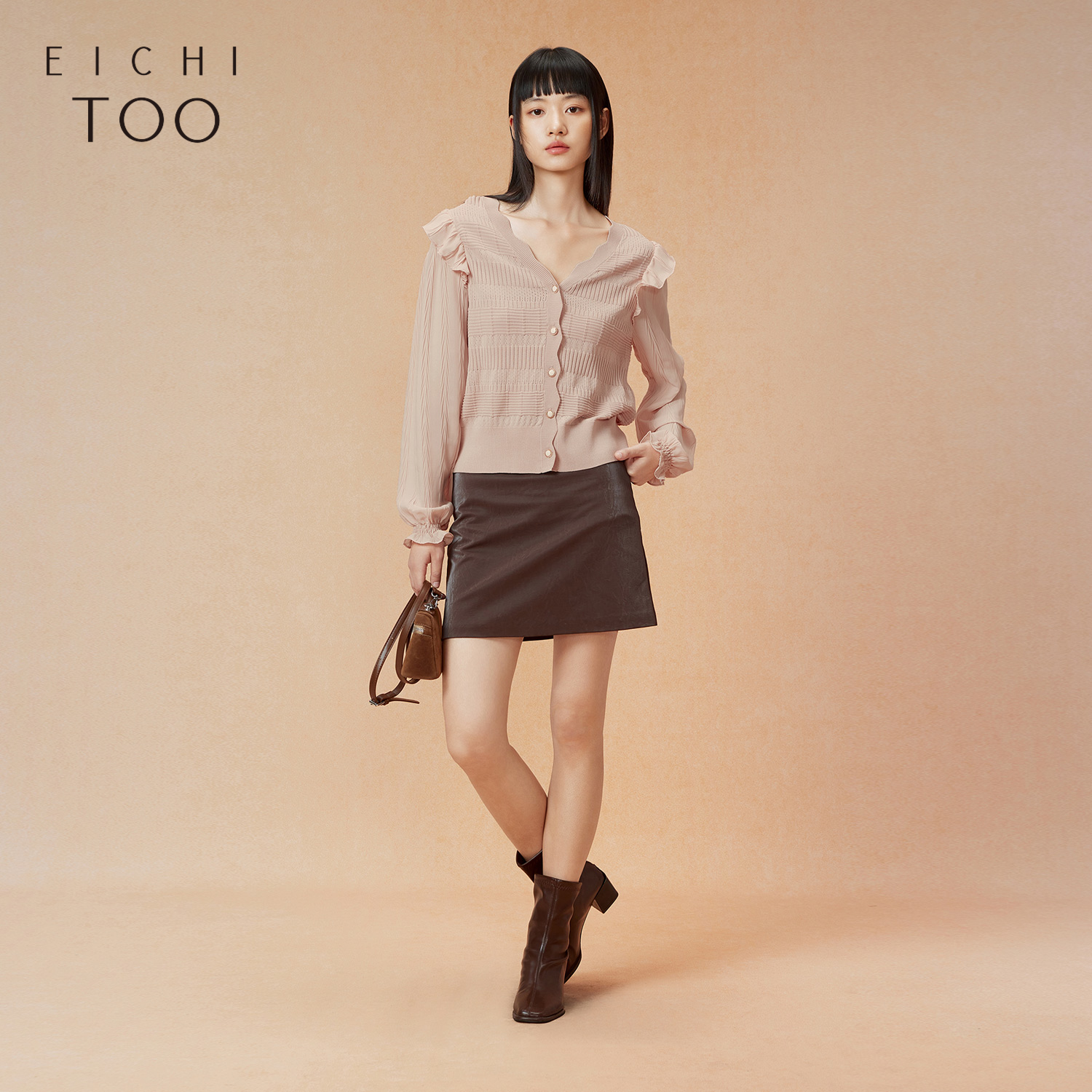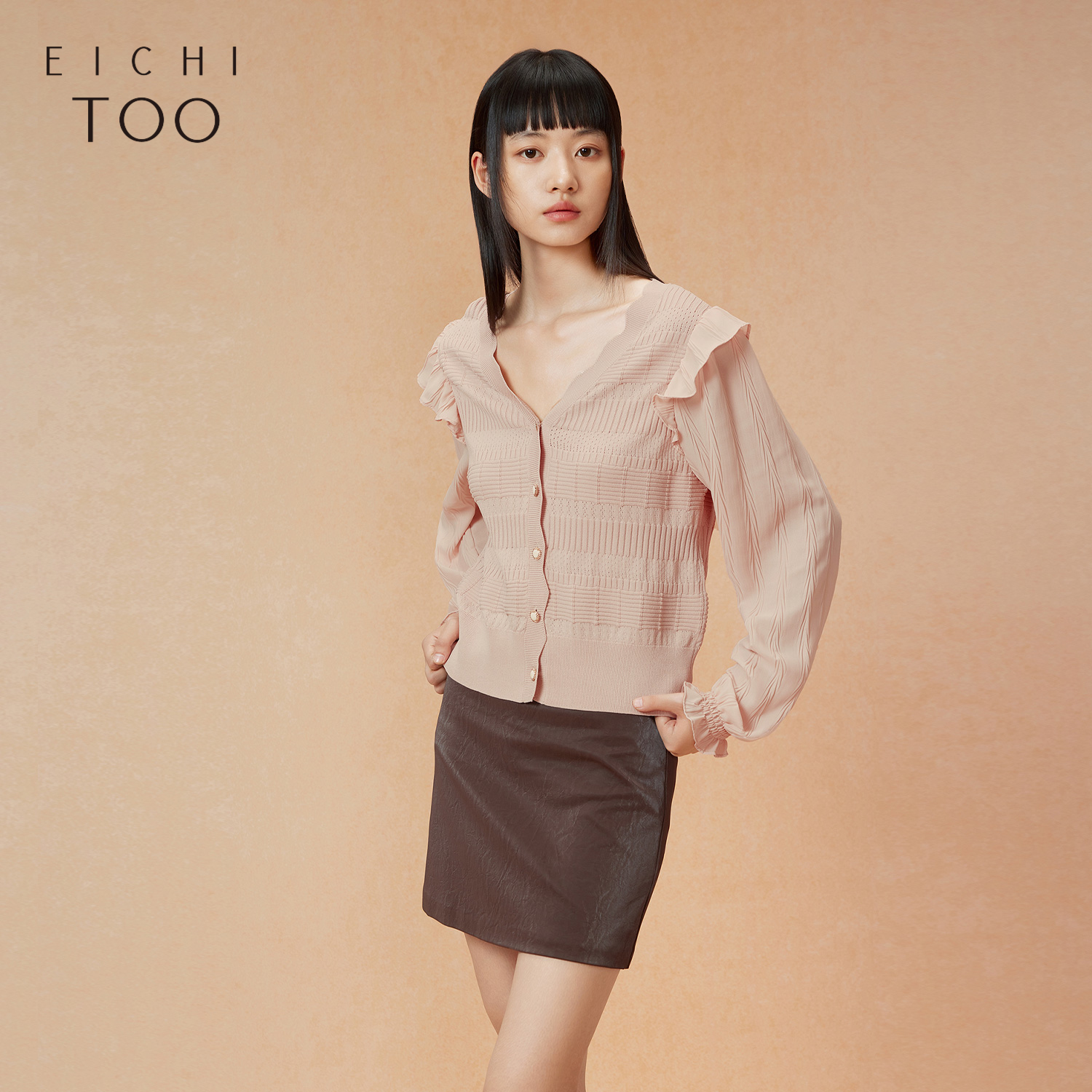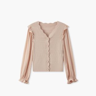 百搭休闲气质毛衫 爱居兔V领假两件拼接针织开衫 秋季