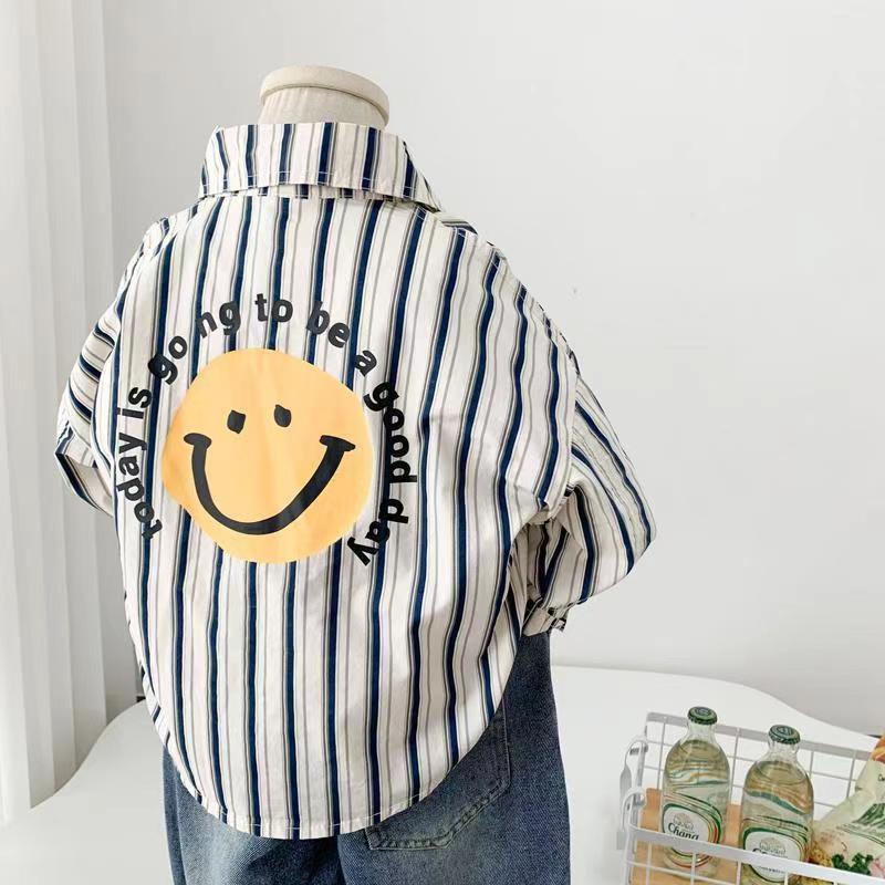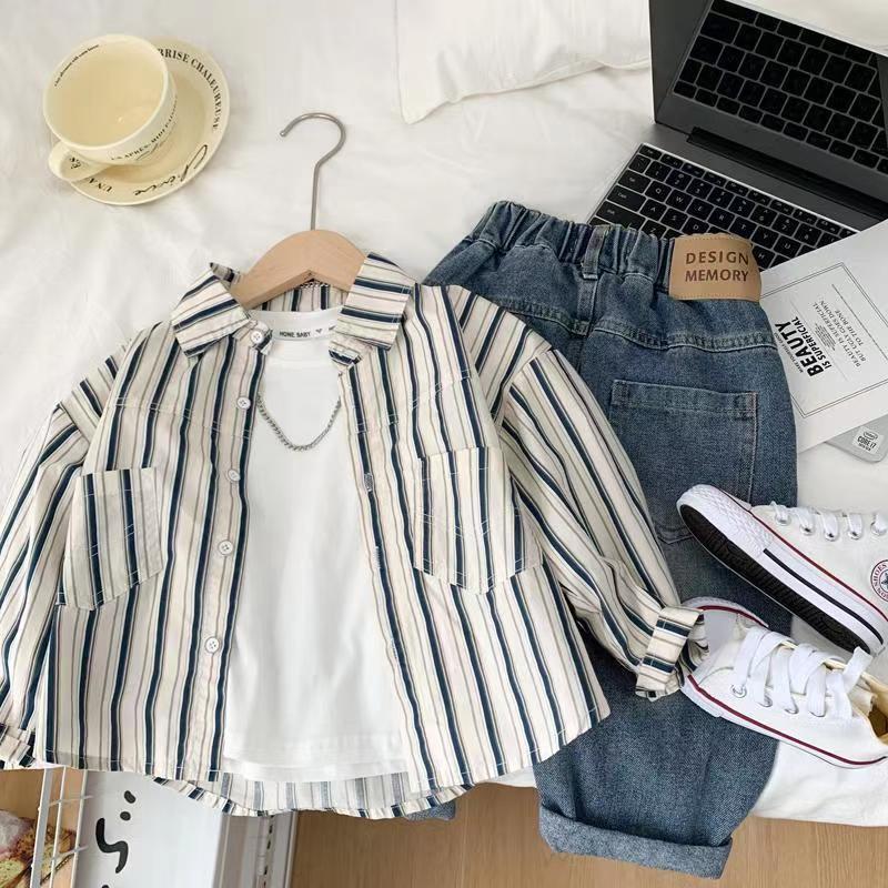 男童衬衫 外套男宝宝春装 春秋款 洋气儿童薄款 条纹上衣 2024新款 童装