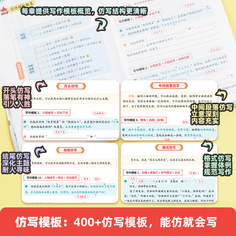 小学同步作文仿写三年级四年级五年级六年级上册人教版 语文写作技巧素材阅读理解与答题模板作文起步入门专项训练习题答题模板