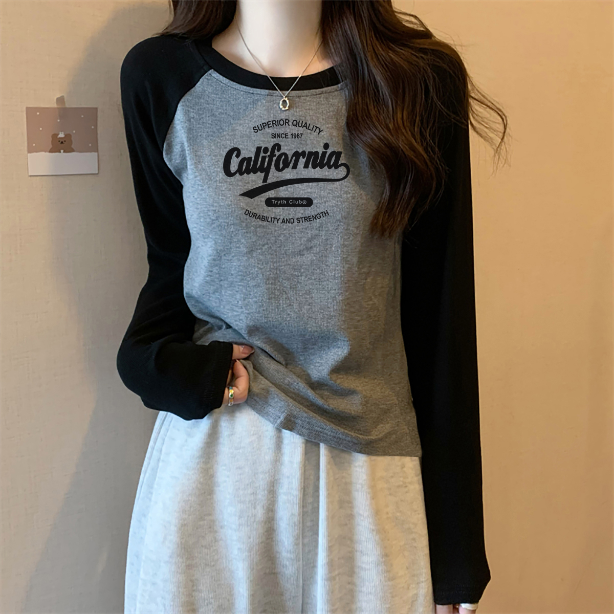 撞色内搭打底衫 宽松洋气减龄韩版 纯棉上衣 t恤春秋冬新款 插肩长袖