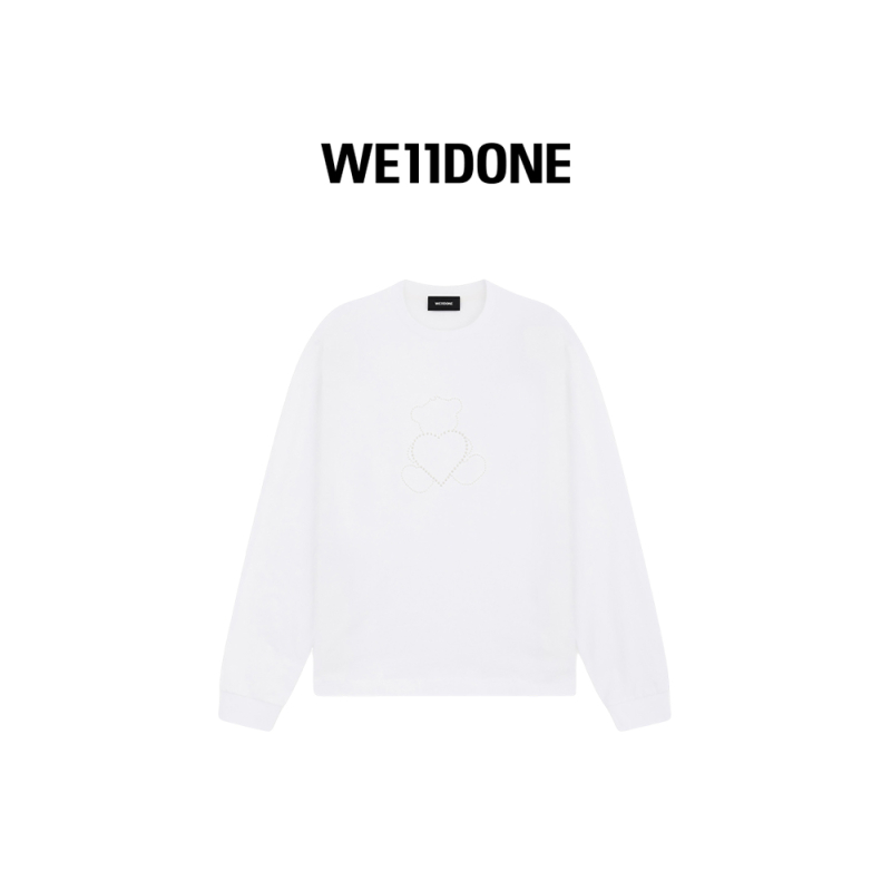 WE11DONE中性男女同款 T恤 简约休闲珍珠小熊宽松长袖