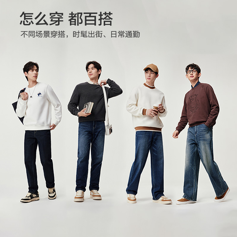 男秋季 宽松阔腿男生裤 2025新款 直筒垂感休闲长裤 子 美式 回力牛仔裤